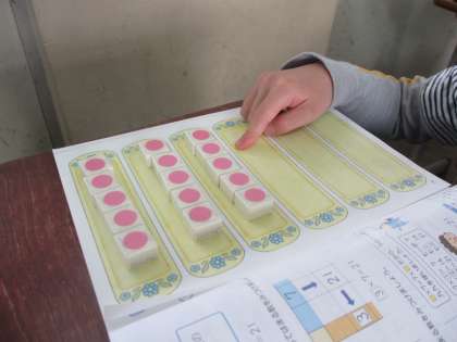 3年生の算数はわり算の学習です。数図ブロックを使って考えると,とても分かりやすくすらすら考えることができました。