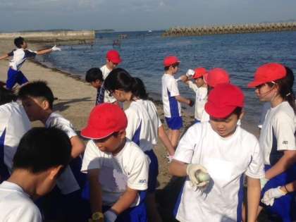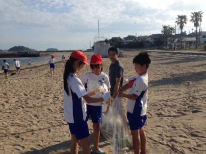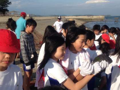「とれとれピチピチ〜♪」と声が聞こえてきます。たくさんの魚介類に大興奮。後片付け,浜清掃もがんばりました。