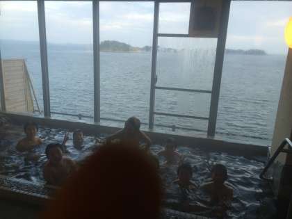 日間賀島観光ホテルに到着。と同時にお風呂タイムです。ちゃんとかかり湯をすませて湯ぶねへGO!