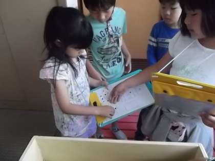1年生はワークシートに行った教室でシールを貼ってもらいました。