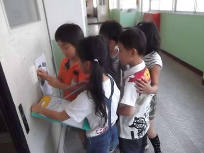 グループに分かれて学校中を周りました。