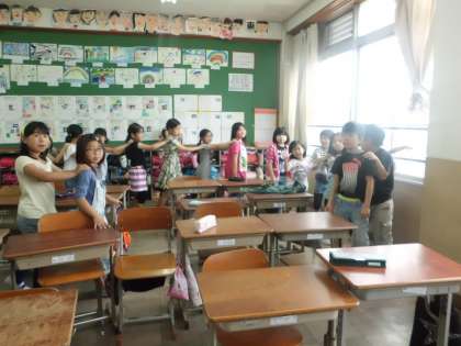 1組が体育館で体ほぐしをしていたころ,2組は・・・
