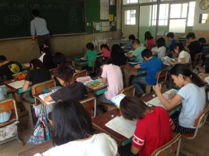 わり算の筆算の学習をみんなが集中して進めています。とても美しく見やすいノートができています。