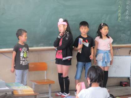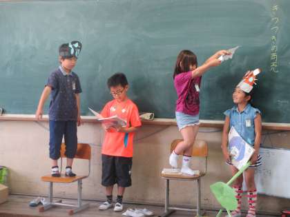 小道具を作ったり,動きを工夫して音読をしたりして,どのグループの発表もとてもすてきなものになりました。