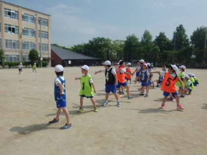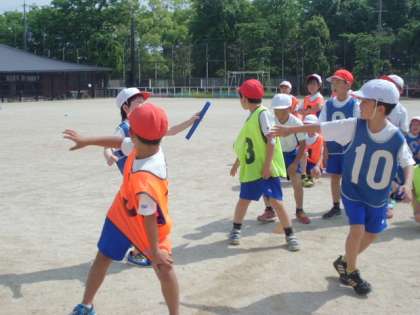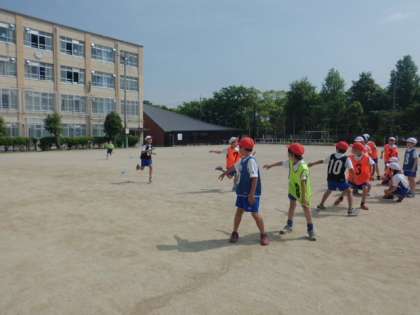 リレーの学習も2回目。バトンパスのやり方も少しずつ分かってきて,声をかけあいながら練習をしていました。