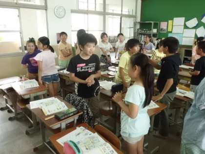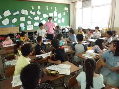 アレックス先生の英語活動では,ナンバーゲームでスペシャルに盛り上がっていました。3の倍数の時だけ,手をたたく。5・10・15・20・・・の時には「ウェ〜イ」と言いながらおどるというものです。「ワン・ツー・パン・フォー・ウェ〜イ・シックス・・・」