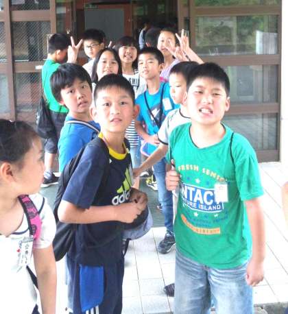 ついに到着しました。みさきの家への第一歩です。みんな元気そうな表情ですねぇ。小雨が降る中ですが,この後天気も回復傾向ですので,しっかり活動できると思います。