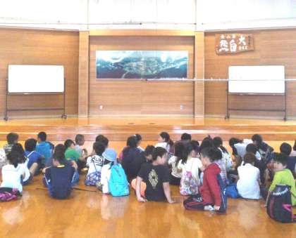 大ホールでの入所式が始まります。所員さんの話をしっかり聞いて,みさきの家での過ごし方を頭にたたき入れてくださいね。