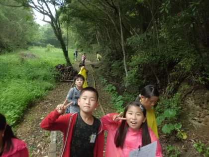 「うら山」だけあって,山道の連続です。足を滑らさないようにみんなで声をかけあって頑張っています。地図ばっかり見ないで,しっかり足元も見て進んでください。