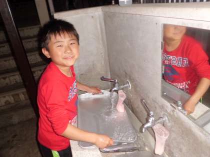 1日目。子どもたちは係の仕事も全力で頑張りました。リーダー,活動,食事,生活,保健。