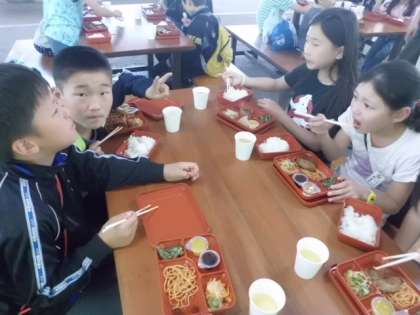 2日目の昼食はハンバーグです。みんなの大好物とあって,ペロリと食べてました。