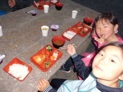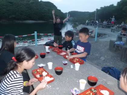 夕日が西の山に沈む姿を見ながら,みさきの家での最後の夕食を楽しみました。