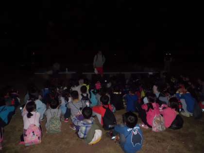 「夜の虫の鳴き声や木々が揺れる音など,普段気にしない音を聞いて歩いてみよう。」と声をかけられた子どもたちは,「ホッ」と胸をなでおろし夜の道を進んでいきました。