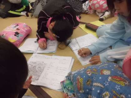 2日目の班会議が始まりました。2日目は初日より成長した場面がたくさん見られました。例えば,磯観察ではルールをしっかり守りケガ人「0」で帰ってきました。選択活動では数の少ない遊具や道具を譲り合って使っていました。ナイトハイクでは,懐中電灯係りが持っていない人の足元を照らしている場面がありました。などなど・・・。