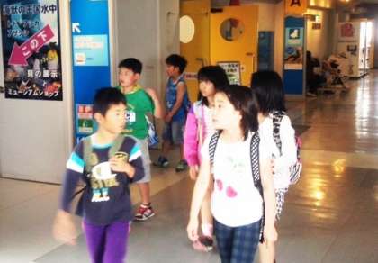 いろいろな魚を見るのを,みんなとても楽しみにしており,意気揚々と見学に出かけていきました。