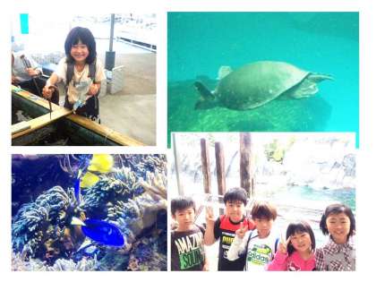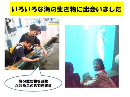 水族館内には,きれいな魚や珍しい魚など,普段見ることのできない海の生き物がたくさんいます。みんな目をキラキラ輝かせて見学しています。