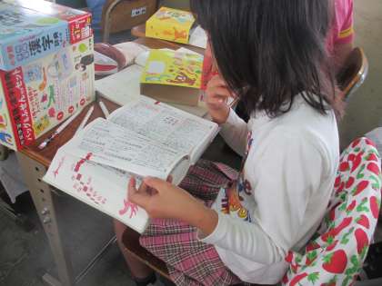 国語辞典の見出し語は五十音順に並んでいます。子どもたちは『よゆうや〜』と言って調べていました。