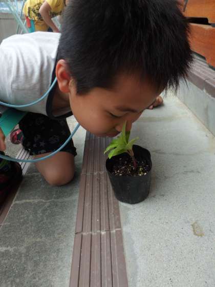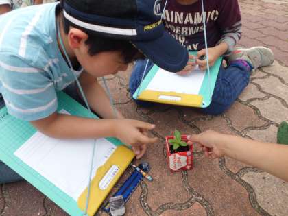 3年生は五感を使って観察をしています。目で見るだけでなく,においも観察しようとする3年生。