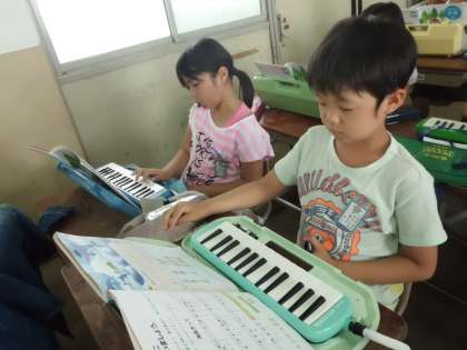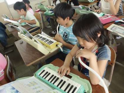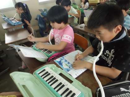 音楽の授業では,鍵盤ハーモニカを使って旋律を考えました。