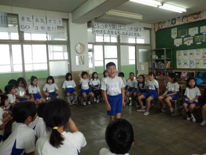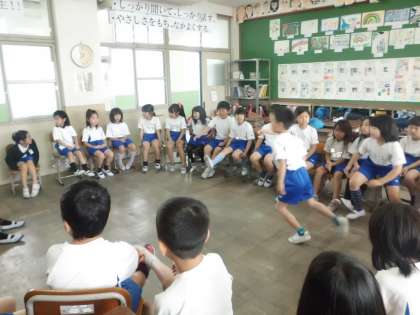 今日のみんな遊びは教室でフルーツバスケット。運動場の具合が悪く,教室でのあそびになりましたが,みんなで楽しんで過ごすことができました。