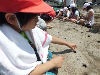 そう言われ,穴の中に慎重にたねを投入。