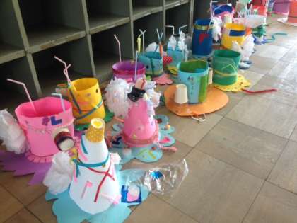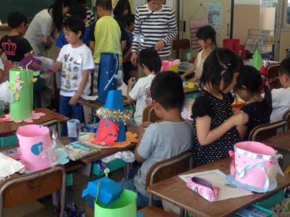 素敵なぼうしが出来上がりました。お友達で見せ合ってそのよいところを交流しました。