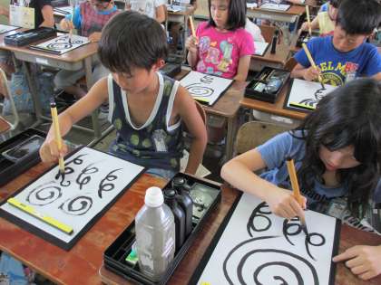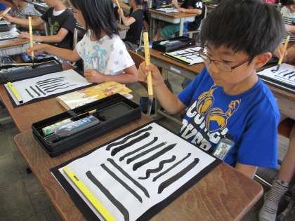 ついに習字の学習が始まりました。早くやりたくてしかたがなかったようで,準備の段階からウキウキしている3年生。