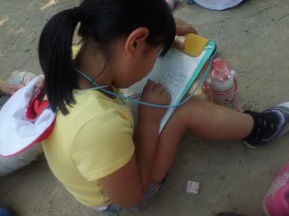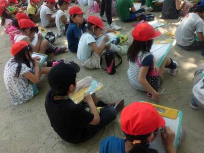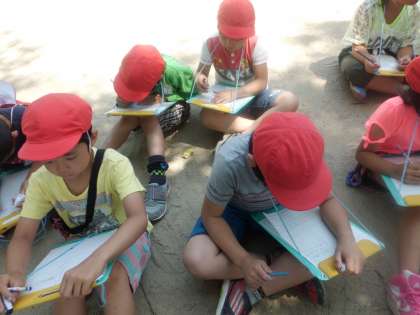大般若公園に到着。プリントに探検した場所の気づいたことをまとめていきます。