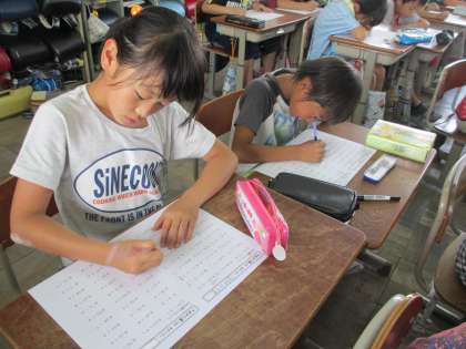 『よーい ドン!』の開始とともに,教室は静寂に包まれ,えんぴつの音だけが聞こえてきました。そして1分30秒後。