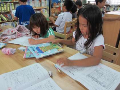 今日も図書室で読書を楽しむ3年生。最近は迷路やこわい話などが人気があるようで,楽しんで読んでいます。そんな中,『平和』に興味を持った子は,『はだしのゲン』など原爆に関する本を進んで読んでいます。『読み終わったら書く』もすっかり定着し,読書ノートにもしっかりと記入しています。