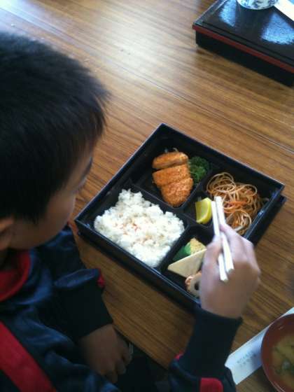 お昼ご飯はとんかつ。とても美味しくいただきました。