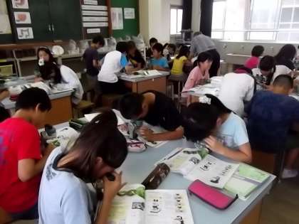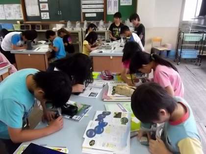 5年生は,顕微鏡の使い方を学習しました。一人ひとりが小さな顕微鏡を使い,いろいろな物を見ていました。「教科書はちいさな点々がたくさんあるよ。」「この顕微鏡ほしい!」など,興味津々でした。これからメダカの観察をしていきます。楽しみですね。