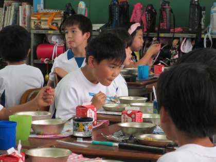 さて,今日は給食と真剣に向き合う子どもを紹介します。見てくださいこの表情。食べるということに,全精神を集中させています。きっと頭の中ではこう思っているのでしょう。