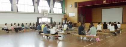 本日1校時に体育館において,PTA総会が開かれました。今年度の本部役員,各部の委員長・副委員長の紹介の後,各部の事業案及び今年度予算案についてご審議いただき,ご承認いただきました。ありがとうございました。