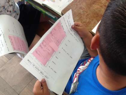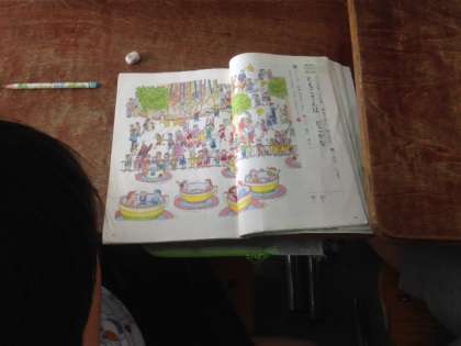 楽しい人物探しゲームを通して,大事なことを落とさずに話したり聞いたりする学習です。2人組で人物のヒントを聞いて絵の中から人物を探しています。