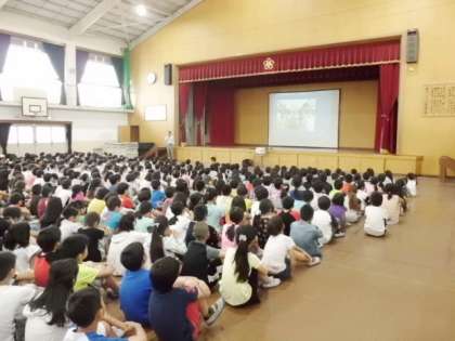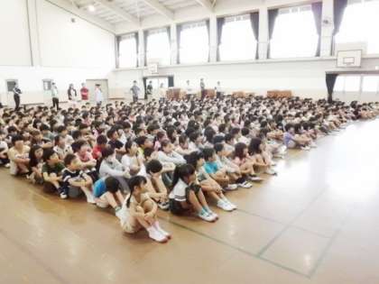6月の朝会では,これまでの学校生活から行動目標を振り返って,しっかりがんばっているところを校長先生からたくさんほめてもらいました。ご覧の通り子どもたちの聞く姿勢もすごく立派です。これからもみんなで力を合わせて素敵な川岡東小学校にしていきましょうね。