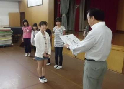 6年生児童5名が健康な歯の表彰を受けました。おめでとうございます。