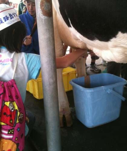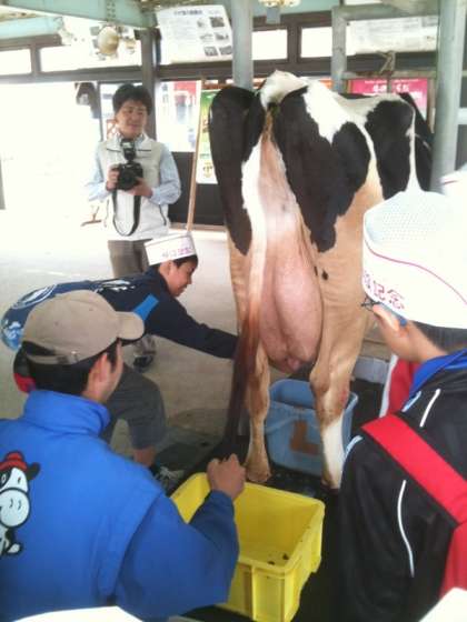 乳搾りも体験しました。牛のお乳はむにゅむにゅしてて、あったかかったです。