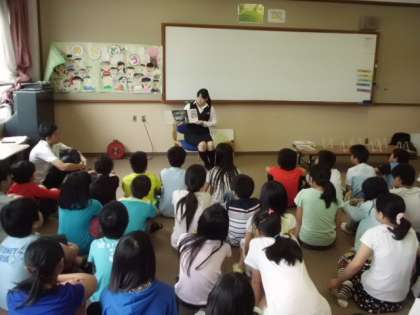 今週は読書週間です。今日は西京図書館の方々に来ていただき,読み語りや本の紹介をしてもらいました。