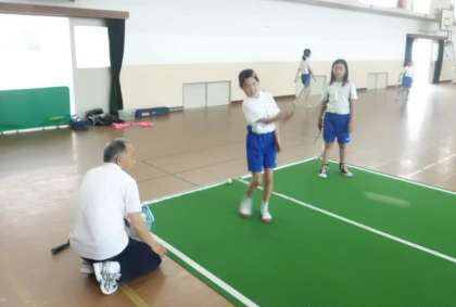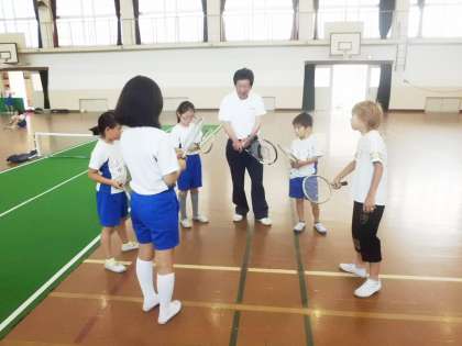 平成27年度の土曜体験学習(バウンドテニス)が開講しました。今日は10名の児童が参加し,午前中しっかり頑張りました。初参加の4年生はみんなセンスが良くさっそく,球筋よく打ち返していました。5・6年生はさすがに昨年からの経験者が多く,ベテランの貫録を見せていました。