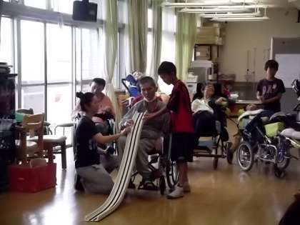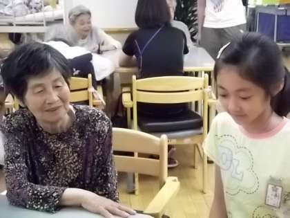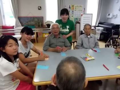 総合学習「わたしたちにできること」で車いす体験,アイマスク体験を通して感じた事や思ったことを交流したり,実際に利用者さんたちと遊んだりお話をしたりしました。なかには「先生,楽しかったからまた夏休みの交流に来たいな。」や,「私,将来看護士さんになりたいからもっといろんな人とお話してみたい。」などそれぞれがいろんなことを感じたようです。この交流がこれからの総合学習に活かせれるといいですね。