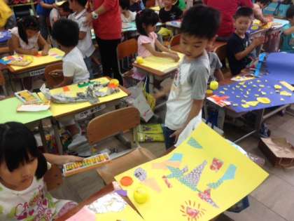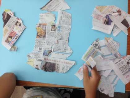 色々な形の紙からイメージを膨らませて作品に仕上げています。自由な発想で楽しい作品がたくさん生まれています。