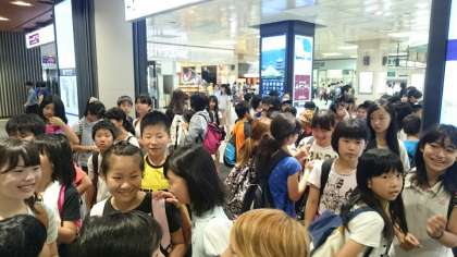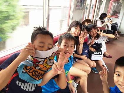近鉄電車の乗って,奈良へ向かいます。みんな気分が高ぶっていますが,車中は他のお客さんもいらっしゃるので,マナーよくいきましょうね!