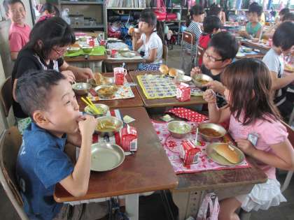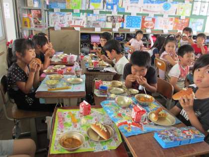 3年生 給食 『パンにハムをはさんでみました』の巻