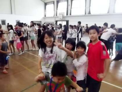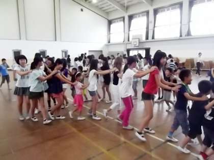 今年度から始まった「ペアタイム」の活動がありました。1年生と6年生が体育館に集まって何やら楽しそうに活動しています。1年生は6年生からもらったメダルをかけてとてもうれしそうです。6年生がやさしくリードし,名曲『かもつれっしゃ』のリズムに乗ってじゃんけんれっしゃのゲームをしていました。