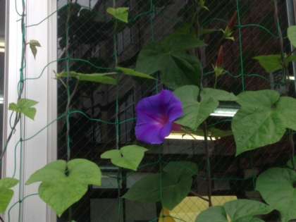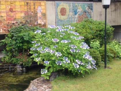 雨模様のぐずついたお天気が続きますが,校内の草花は美しく咲き誇っています。あじさいはもちろんですが,昨年から育てている緑のカーテンのオーシャンブルーも花を咲かせ始めました。