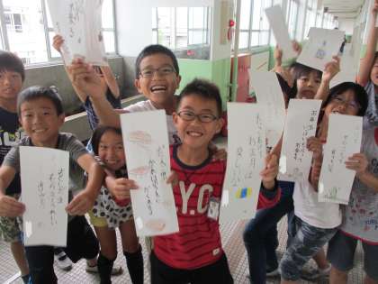 今日は季語を入れて自分たちで俳句を作ってみました。五・七・五の十七音に己の全てをかけて,俳句を作っていきました。