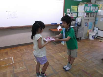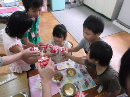 みんなで牛乳で乾杯してメッセージカード集をプレゼントしてお祝いしました。
