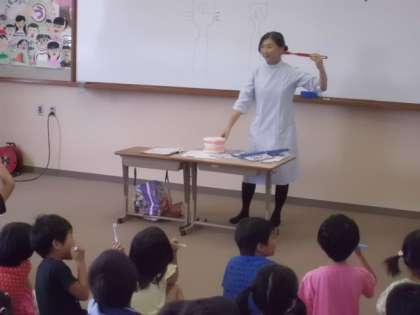 今日は歯医者さんに来ていただき,歯磨き指導をしてもらいました。