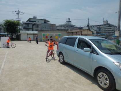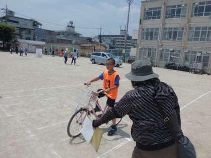 西京警察署,川岡東交通安全推進委員,地域保護者の方々に来ていただき,4年生対象に自転車教室を開いていただきました。